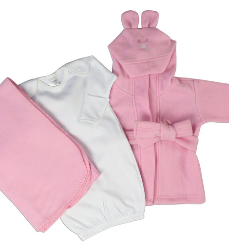 • Bambini Newborn Baby Girls 3 Pc Layette Set (Gown, Robe, Fleece