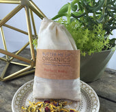This wonderfully soothing and calming bath tea is perfect for babies and adults alike. A winning combination of organic botanicals all beneficial and safe for baby are combined in an unbleached muslin bag. Steep under warm water in the bath and enjoy the calming effect it has on baby's mind and soothing effect it has on his skin. Made with a fragrant combination of all organic rose petals, lavender buds, chamomile pods, calendula and oats, these all organic ingredients are wonderful for baby. Rose petals act as a mild cleanser while the lavender pods calm baby and soothe his skin. The calendula flowers are extremely soothing and nourishing on baby's skin just like the chamomile pods that also have a calming aromatic effect on baby's mind. Lastly, the organic oats are a perfect all natural way to nourish and moisturize baby's delicate skin. This combination will leave your baby calm and smelling fresh! Use it on yourself as well! This listing is for ONE individual bath tea each in it's own own muslin bag. Put in baby's drawer to freshen clothing prior to use :) Ingredients: Lavender*, Calendula*, Chamomile*, Rose*, Oats* *Indicates Certified Organic Shop Info: We believe that your skin is just as vital as any other organ in your body. Here at Butter Me Up Organics we like to say, "Don't put anything on your body that you wouldn't put in it." So, on that note, all of our products are completely edible. They may not be so tasty, however, but everything we use are non- toxic premium ingredients. Can you say that about the products you're currently using? Other Info: Organic Completely cruelty free No sulfates, phthalates or parabens…ever No synthetic dyes or fragrances Completely all natural and safe Zero waste company Packaging upcycled when possible Everything is made with love <3